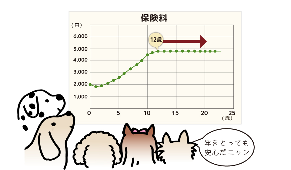 つばきのペット保険は、12歳以降の保険料が変わらないのもポイントです!